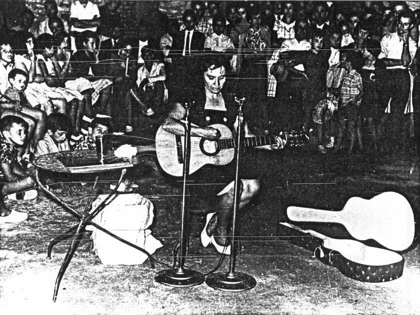 Foto principal: Violeta Parra grabando para el Canal 9 de la U. de Chile, en 1966 / Memoria Chilena.