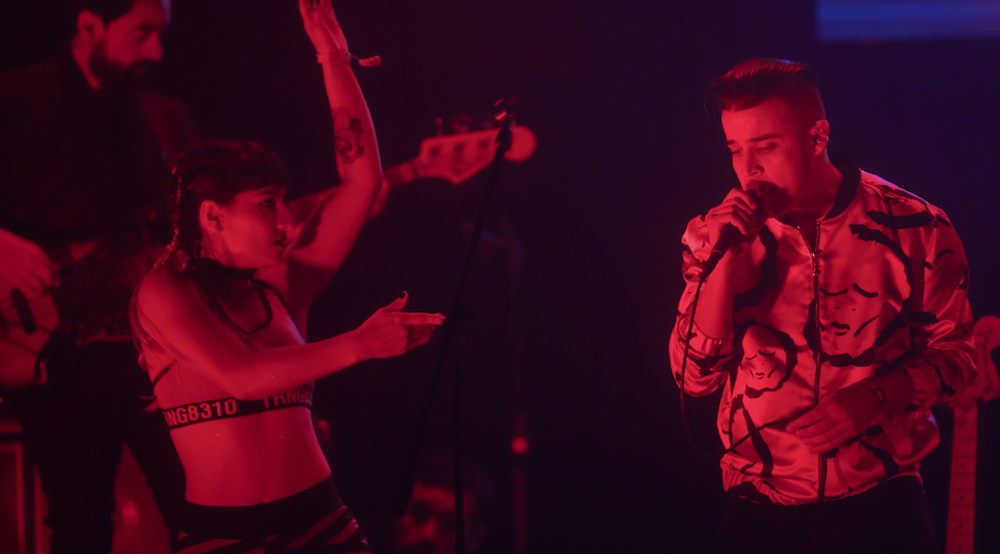 El show saltaba de un estilo a otro en segundos. ‘Nada por Quebrar’ podría llevar el mérito de ser la primera canción con la insignia reggaetonera en el festival Lollapalooza. El tema fue acompañado por dos bailarinas que danzaban al ritmo de la música y luces que parpadeaban hipnóticamente en La Cúpula. El frontman cambiaba de máscara de manera versátil, zarandeando la guitarra, movimiento digno de un rockstar para luego en minutos bailar como estrella del pop.