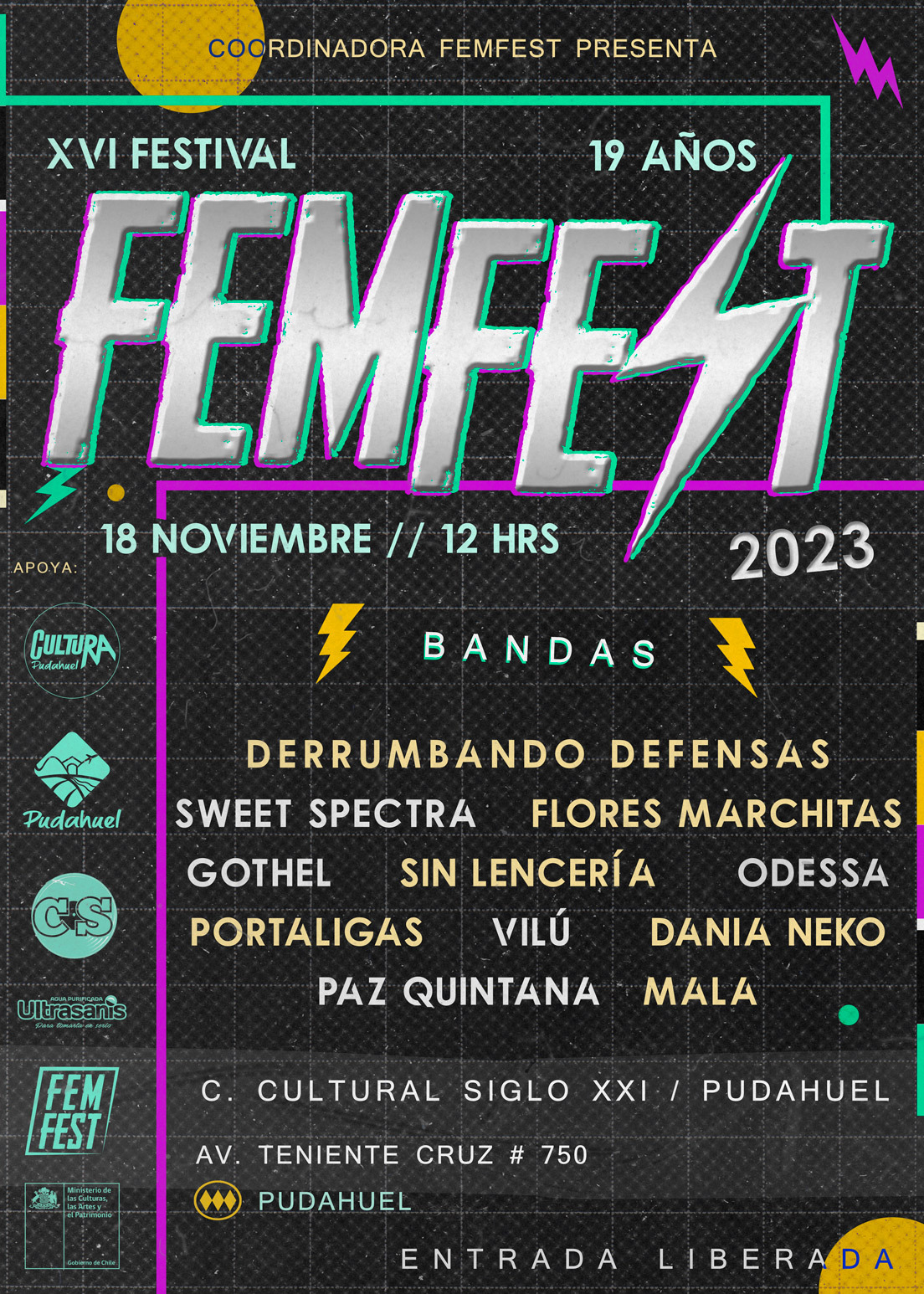 Ya son 16 ediciones y 19 años de unir el activismos, conversación y música en voz y manos de mujeres y disidencias. Este 2023 contaremos con once proyectos musicales, pero eso no es todo, porque FEMFEST también ofrecerá charlas, obras de teatro, talleres y conversaciones.