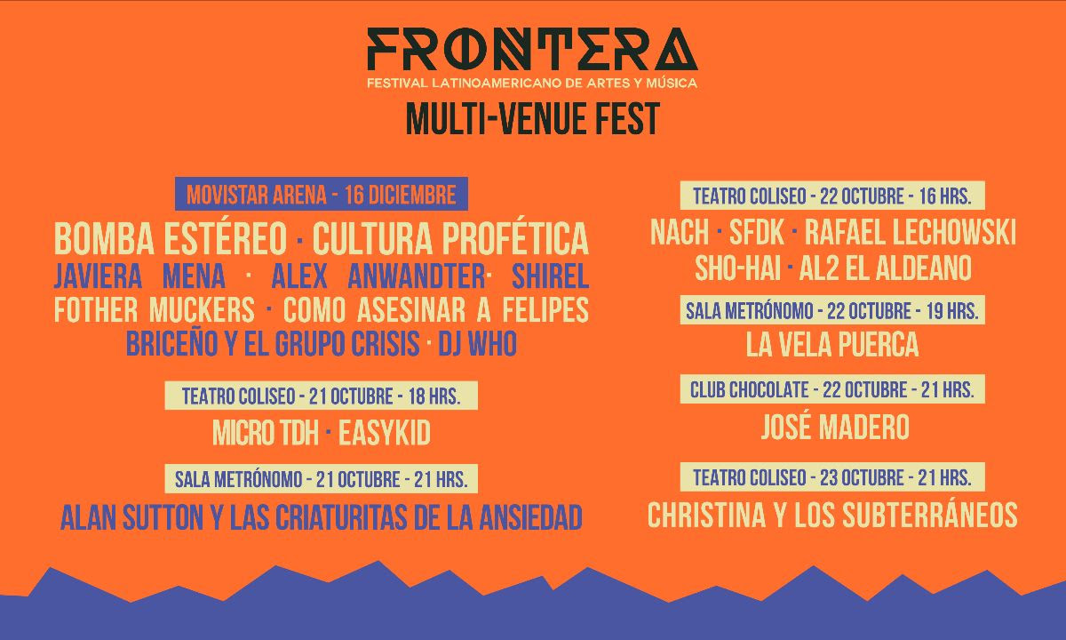 Tras la recomendación de seguridad enmarcada en los Juegos Panamericanos y Papanamericanos a realizarse en la capital, Frontera baja la jornada del domingo 22 de octubre en Hipódromo Chile y muta a conciertos reducidos con fechas en Teatro Coliseo, Club Chocolate y Sala Metrónomo.