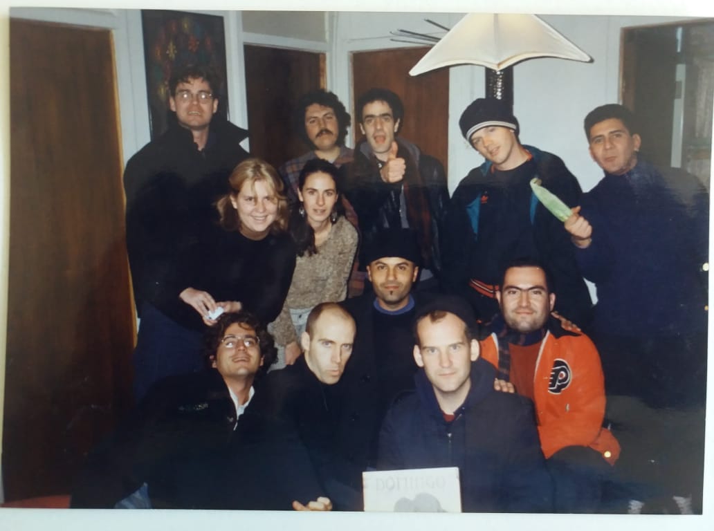 “En estos días de reflexión me puse sentimental y recordé este lindo momento que vivimos con Fugazi en Farellones-Santiago de Chile. Crédito de la foto Francisco Antonio Mujica Maureira (28 de Agosto 1997)”, escribió Roberto (de rojo en la foto), en su cuenta de Facebook, el 30 de octubre de 2019.