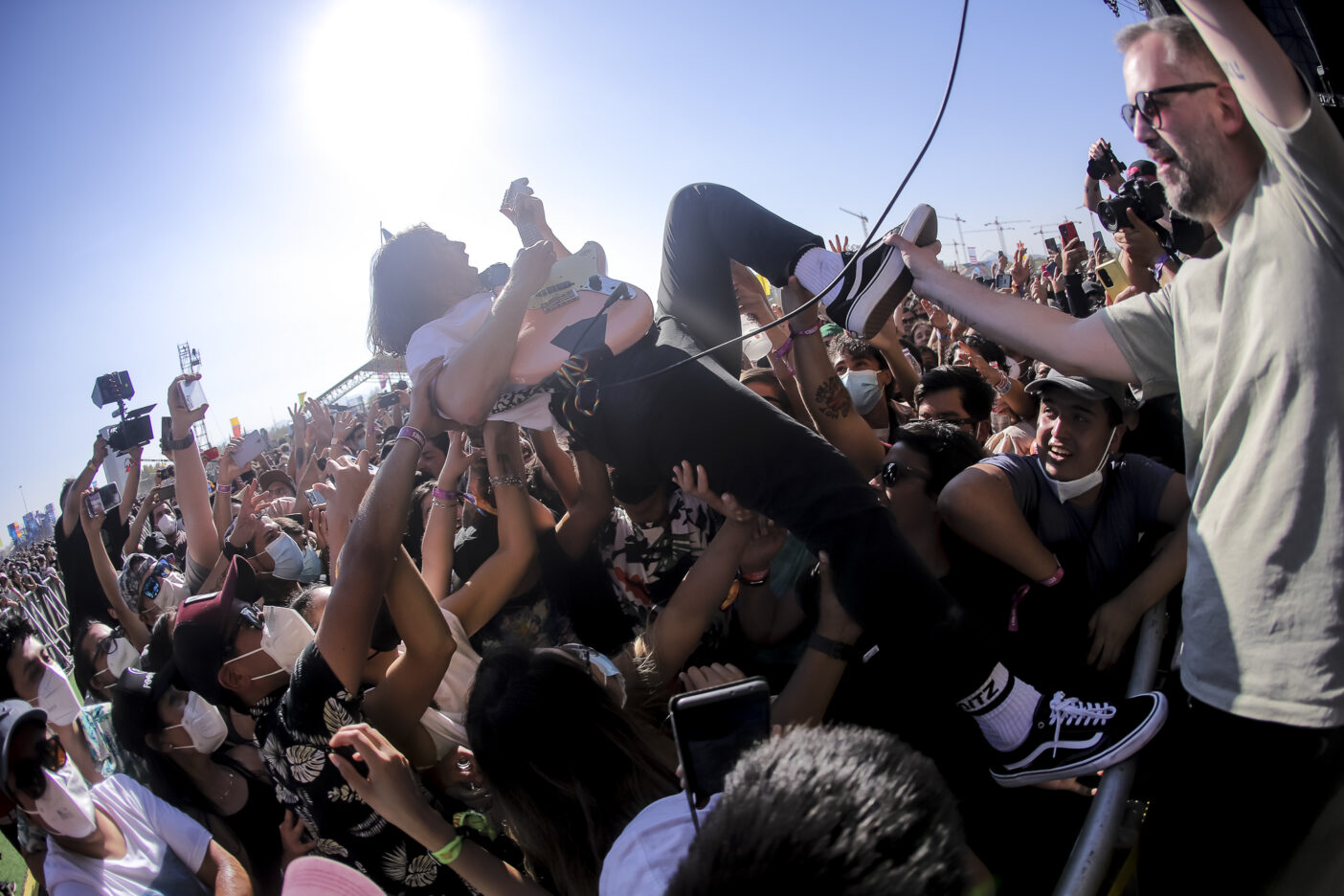 La meteórica carrera de IDLES los hacía uno de los números más interesantes del viernes, con dos discos lanzados desde el comienzo de la pandemia, una base de fans cada vez más grande y siendo este su debut en el país, la experiencia prometía mucho. Si bien —muy en su estilo— la banda cumplió con todo lo que se le pedía, el contexto Lollapalooza fue lo que les jugó en contra. Una hora de show se hace muy poco, y la verdad es que al salir del público uno podía ver como esos sesenta minutos no fueron suficientes para soltar toda la energía acumulada que sus fans querían dejar en el pasto sintético dispuesto para el escenario.