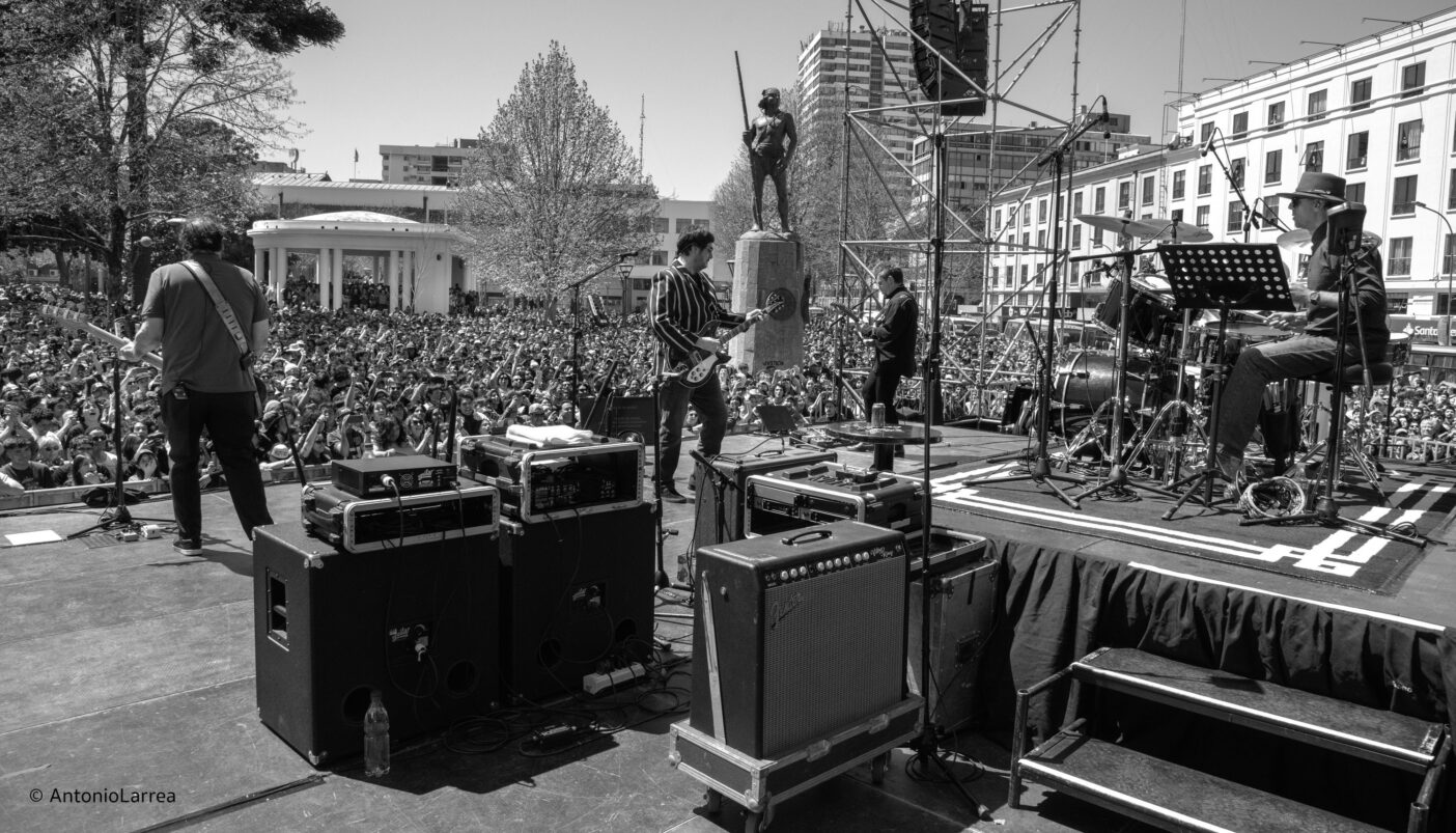 Llegó un momento en el que no pude caminar más, no cabía más gente en ese sector de la plaza y la banda estaba a punto de salir al escenario. A mi lado había una mujer de unos 60 años que estaba muy molesta porque teníamos en frente a un joven levanta-pololas y estaba asustada de no poder ver nada. Me miraba buscando que nos indignáramos juntas, pero afortunadamente, nadie levantó a su polola frente a nuestras cabezas. Me dijo que no veía a Los Tres en vivo hace más de 25 años y que por eso venía. Estaba muy preocupada de que nadie le tapara la vista, así que de cierta forma agradecí su determinación, como pudo, despejó nuestro campo visual.