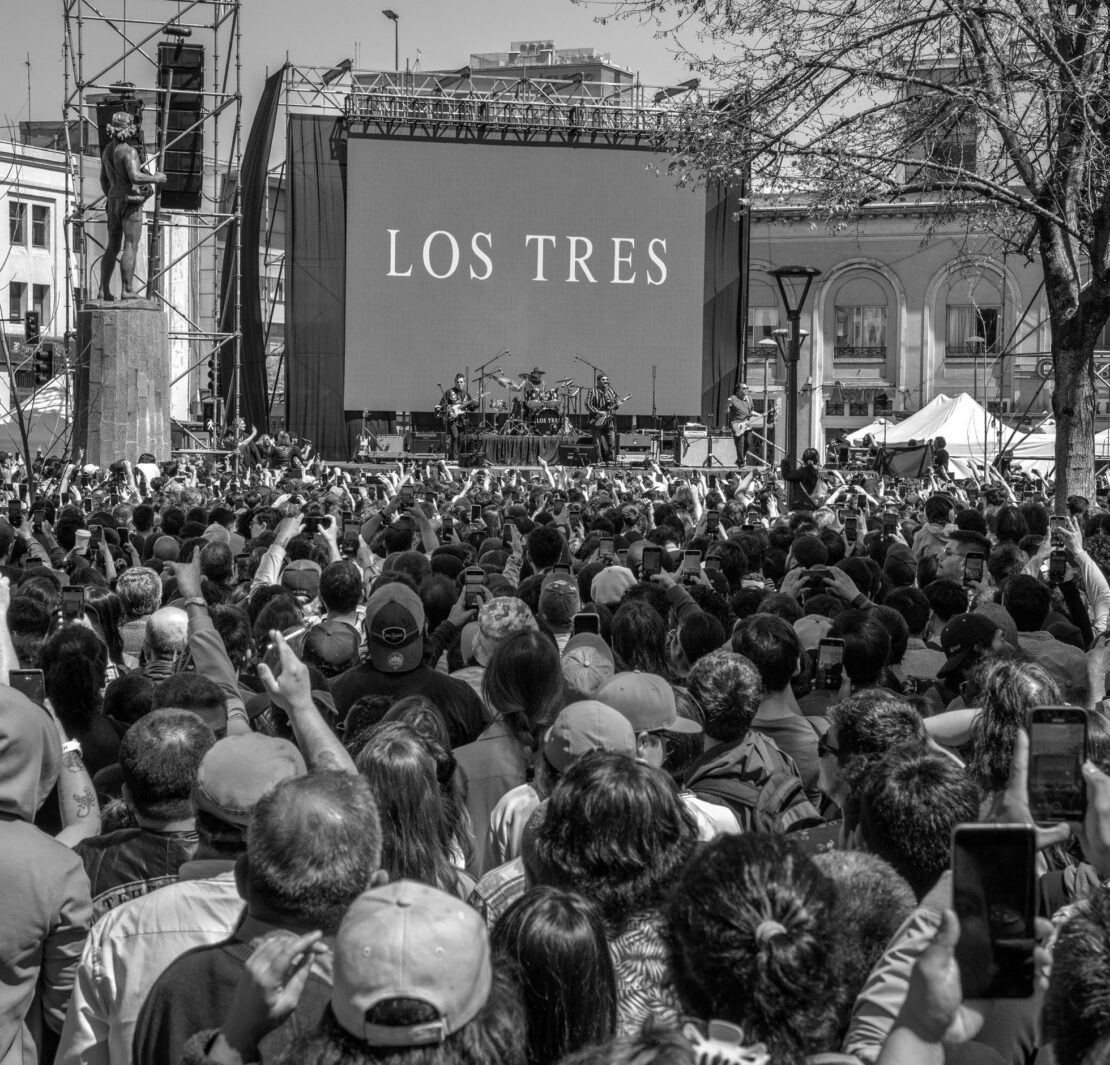 A un mes del inicio de los grandes conciertos que Los Tres tienen preparados en Santiago, Concepción, Puerto Montt y Antofagasta y el recién estrenado EP, Revuelta, te invitamos a leer una crónica de uno de los días más emocionantes del 2023: el regreso de Los Tres en la Plaza de Armas de Concepción.