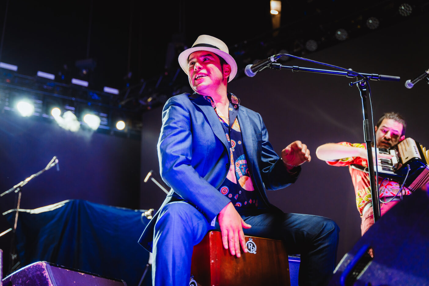 La tarde comenzó animada. Torito Alfaro junto a sus cinco compañeros músicos abrieron la jornada con un set cuequero que hizo bailar en la platea y la cancha al público que llegó temprano. Qué gusto poder ver al músico lleno de energía, visiblemente contento, después de un periodo de salud complicado. Una verdadera fortuna, también, verlo acompañado casi al final de su actuación junto a la gran María Esther Zamora, con la que interpretaron cuecas de su padre, Segundo Zamora. Ojalá todos pudiésemos pasearnos por el mundo con la naturalidad y elegancia con la que María Esther toca el pandero. Definitivamente, un acierto por parte de Los Tres de hacerse acompañar por estos músicos durante varios de los conciertos de su Revuelta. Una lástima que tan pocas personas hayan podido disfrutar del show.