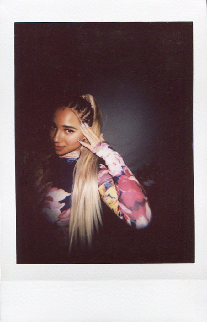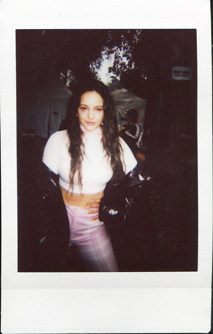 “Todos los días me puse metas de un artista: el viernes me propuse a Jorja Smith. Eran como las 9 de la noche y ya estaba resignada, estaba rendida, ‘ya no me la encontré’, y en segundos un amigo me dice ‘Vale, Jorja está en el Artist Village, vente corriendo’, y fui, conversamos, le regalé una foto, la otra me la dejé. Fue muy cercana, muy emocionante, le hizo cumplidos a mi pelo, jajaja. El sábado se descontrola todo: me encontré con la Rosalía viendo a A.Chal, pudimos conversar, le tomé la polaroid, también se la di. El domingo fue contigo, jajaja, fue demasiado divertido ese momento, me dijiste que estaba C.Tangana y yo no tenía las pilas puestas en la cámara y es cuático porque todo pasa en cosas de segundos, y ahí una va aprendiendo que hay que andar siempre lista porque quizás son cosas que no se vuelvan a repetir jamás, o que no vas a poder lograrlas hasta mucho tiempo después, es la oportunidad. Jugar con eso, con el estar en el momento indicado, me parece super desafiante”.