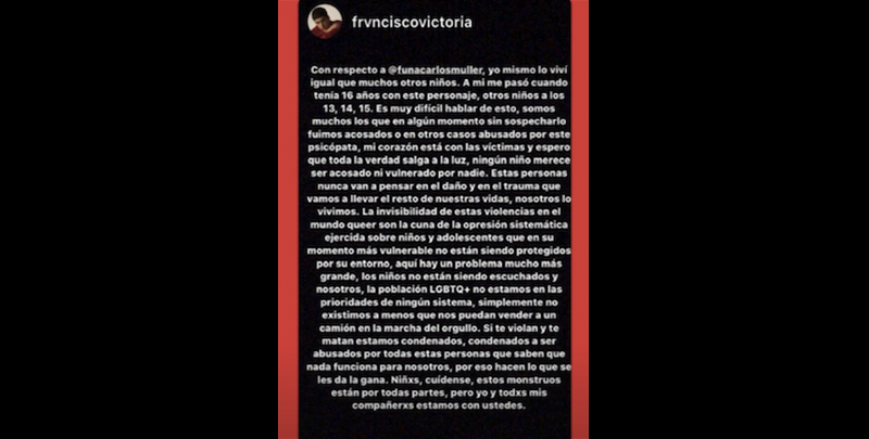 Este fin de semana se hizo viral la cuenta @funacarlosmuller en donde diferentes personas han relatado hechos de acoso y abuso sexual por parte de Carlos Müller, reconocido fotógrafo de la escena local. La mayoría de los testimonios publicados en aquella cuenta indican que se trataron de hechos ocurridos cuando los jóvenes eran adolescentes y se remontan, algunos, incluso hasta casi quince años atrás.