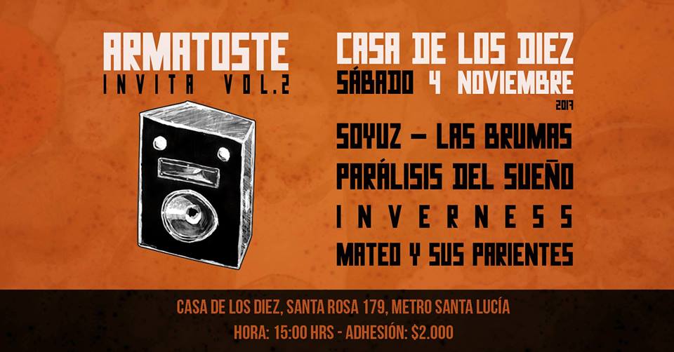 El line up definitivo lo integran los grupos Parálisis del Sueño y Soyuz -ambos parte del catálogo del label organizador-, además de los invitados Mateo y sus Parientes, Inverness y Las Brumas, quienes se presentarán el día sábado 4 de noviembre en la Casa de los Diez (Santa Rosa 179, Santiago Centro) a partir de las 15 horas.