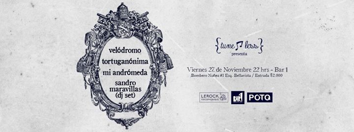 Este viernes 27 de Noviembre, tres bandas amigas de las guitarras sucias se toman el BAR 1: Velódromo (TuneLess Records), Mi Andrómeda (TuneLess Records) y Tortuganónima (LeRockPsicophonique).