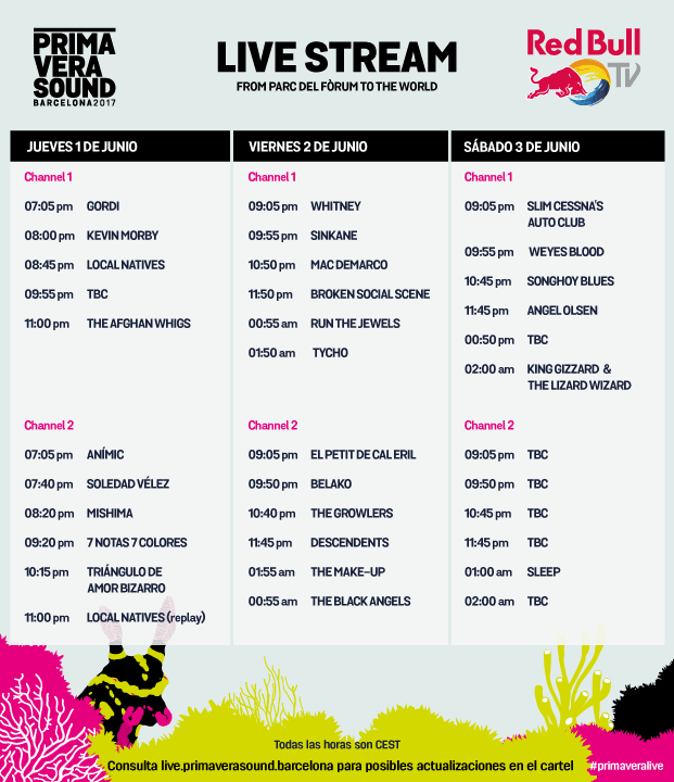 Puedes seguir todo el festival por medio del sitio web de Primavera Sound, su aplicación móvil (disponible para iOS y Android), o bien por los canales de Red Bull TV en todas sus plataformas.