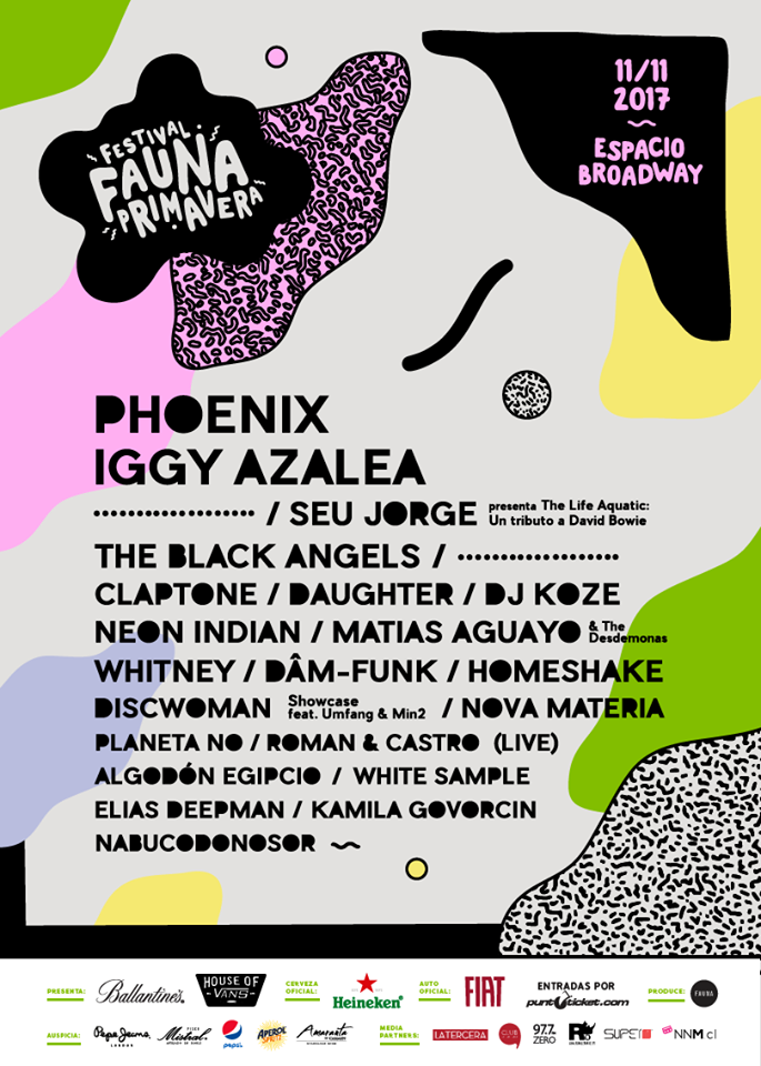 Hasta que llegó el día. Luego de tenernos expectantes respecto a los artistas que podrían formar parte del cartel de Fauna Primavera 2017, Fauna Producciones reveló hoy a través de La Tercera el cartel completo de proyectos musicales que se presentarán el día 11 de noviembre en el Espacio Broadway, destacando entre ellos a Iggy Azalea, Daughter y Claptone, entre varios otros.