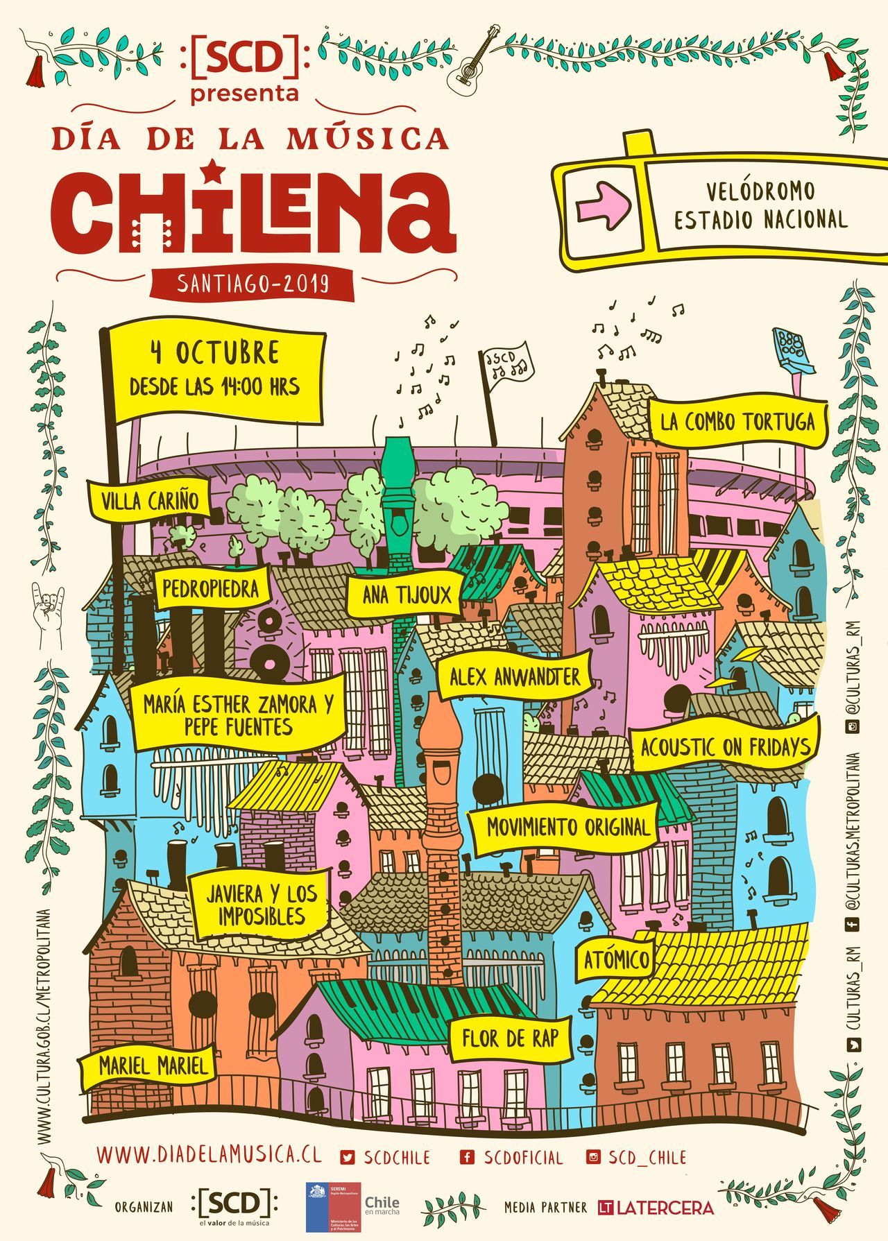 El cartel está conformado por María Esther Zamora y Pepe Fuentes, Atómico, Acoustic on Fridays, La Combo Tortuga, Flor de Rap, Mariel, Javiera y Los Imposibles, Movimiento Original, Pedropiedra, Villa Cariño, Alex Anwandter y Ana Tijoux, quienes se presentarán a partir de las 14:00 hrs. en el recinto deportivo capitalino, en un show cuya entrada será liberada para todos quienes lleguen a eso de las 10 de la mañana a las boleterías del Estadio Nacional (Av. Pedro de Valdivia 5140, Ñuñoa).