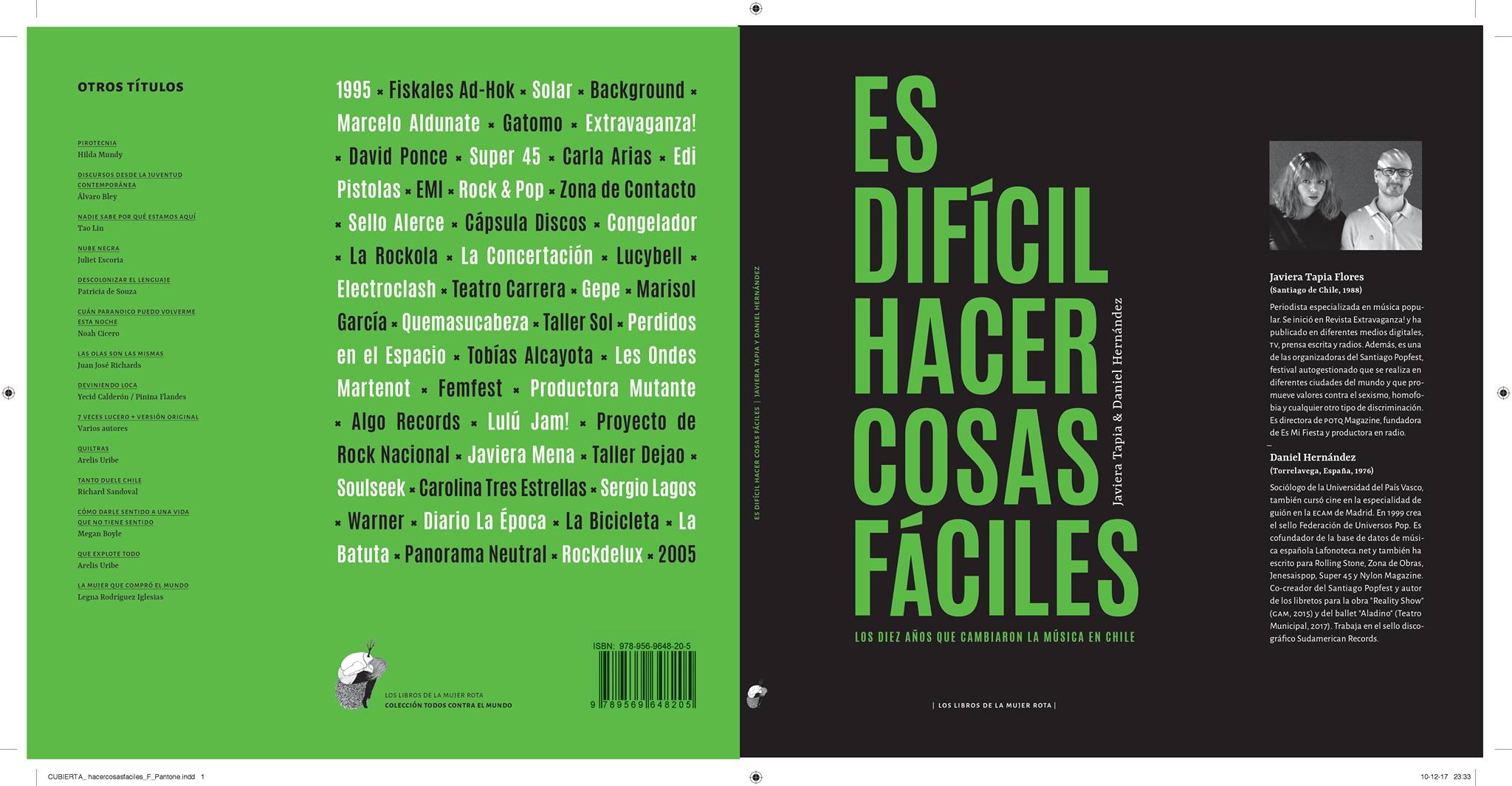 ¡Estamos de fiesta este viernes! Porque Javiera Tapia, nuestra directora en co autoría con Daniel Hernández y la editorial Los Libros de La Mujer Rota lanzarán “Es Difícil Hacer Cosas Fáciles: los diez años que cambiaron la música en Chile”, con la presentación del periodista David Ponce, la música Felicia Morales y la reunión en el escenario de Tobías Alcayota, mostrando su música en vivo.