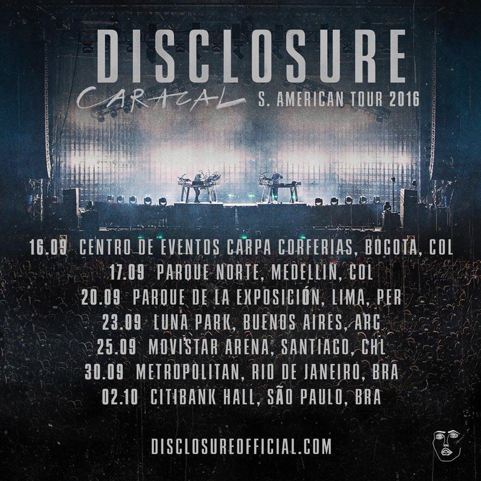 Los chicos de Disclosure anunciaron hoy su debut en suelo chileno, fijando una presentación en el Movistar Arena para el día 25 de septiembre, en el marco de una gira sudamericana que recorrerá también Argentina, Brasil, Colombia y Perú.