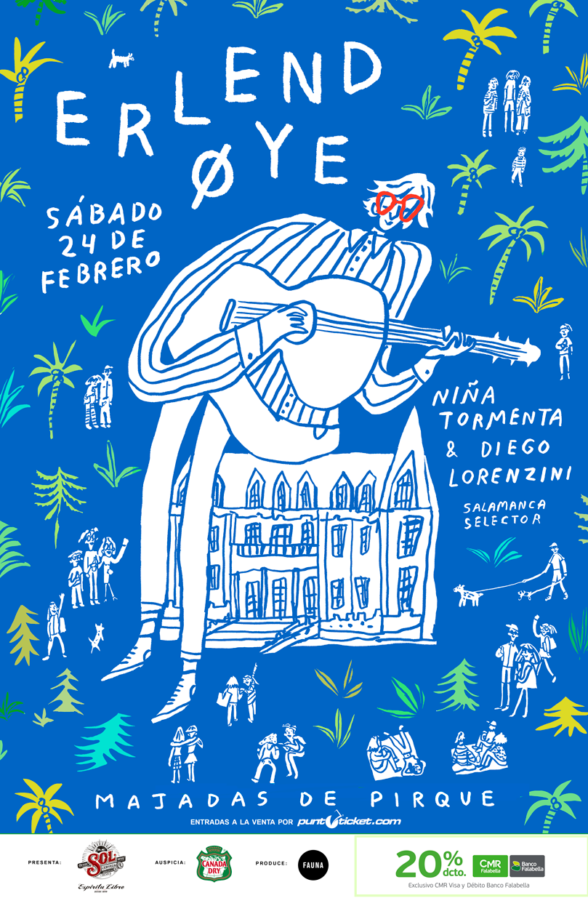 A estas alturas, ya no es novedad anunciar que Erlend Øye venga a tocar a nuestro país, y es que durante todo este verano el noruego ha estado girando por el centro y sur de Chile, mostrándonos las diversas facetas que posee como artista. Dicha gira vio hoy una pequeña extensión, anunciando un nuevo concierto para el día 24 de febrero en Las Majadas de Pirque (José Julio Nieto s/n, Loteo Parque Las Majadas), ocasión en donde también lo acompañarán los músicos Niña Tormenta, Diego Lorenzini y Salamanca Selector.