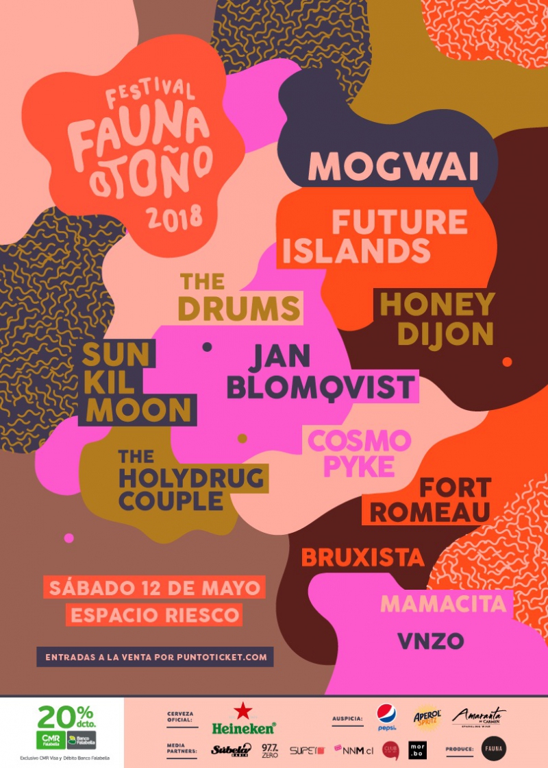 La lista es completada por Future Islands, Honey Dijon, Jan Blomqvist, Cosmo Pyke, Fort Romeau, Sun Kil Moon y The Drums, a los cuales se sumarán los chilenos Mamacita, Bruxista, VNZO y el dúo local The Holydrug Couple.