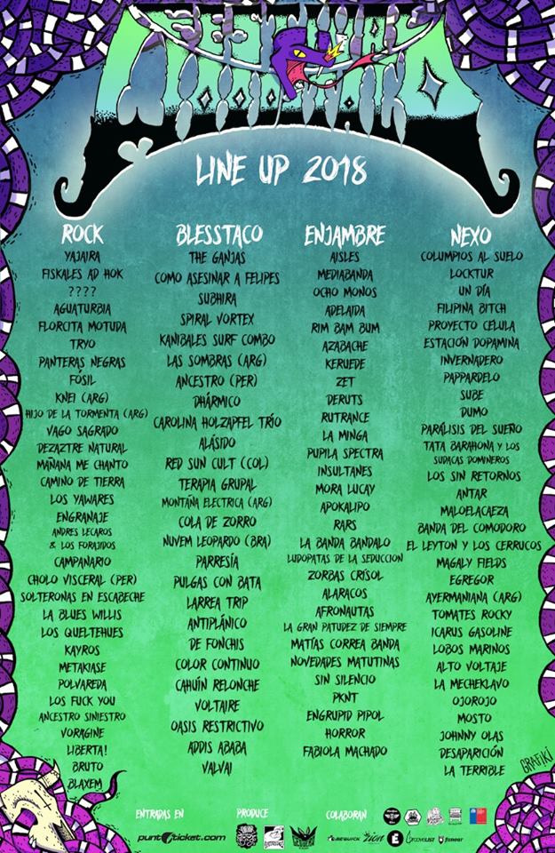 Entre los nombres que más destacan dentro del cartel, se encuentran Tata Barahona y los Sudacas Domineros, Fiskales Ad-Hok, Tomates Rocky, Parálisis del Sueño, La Blues Willis, Filipina Bitch, Aguaturbia y Antiplánico, entre muchos (MUCHOS) otros.