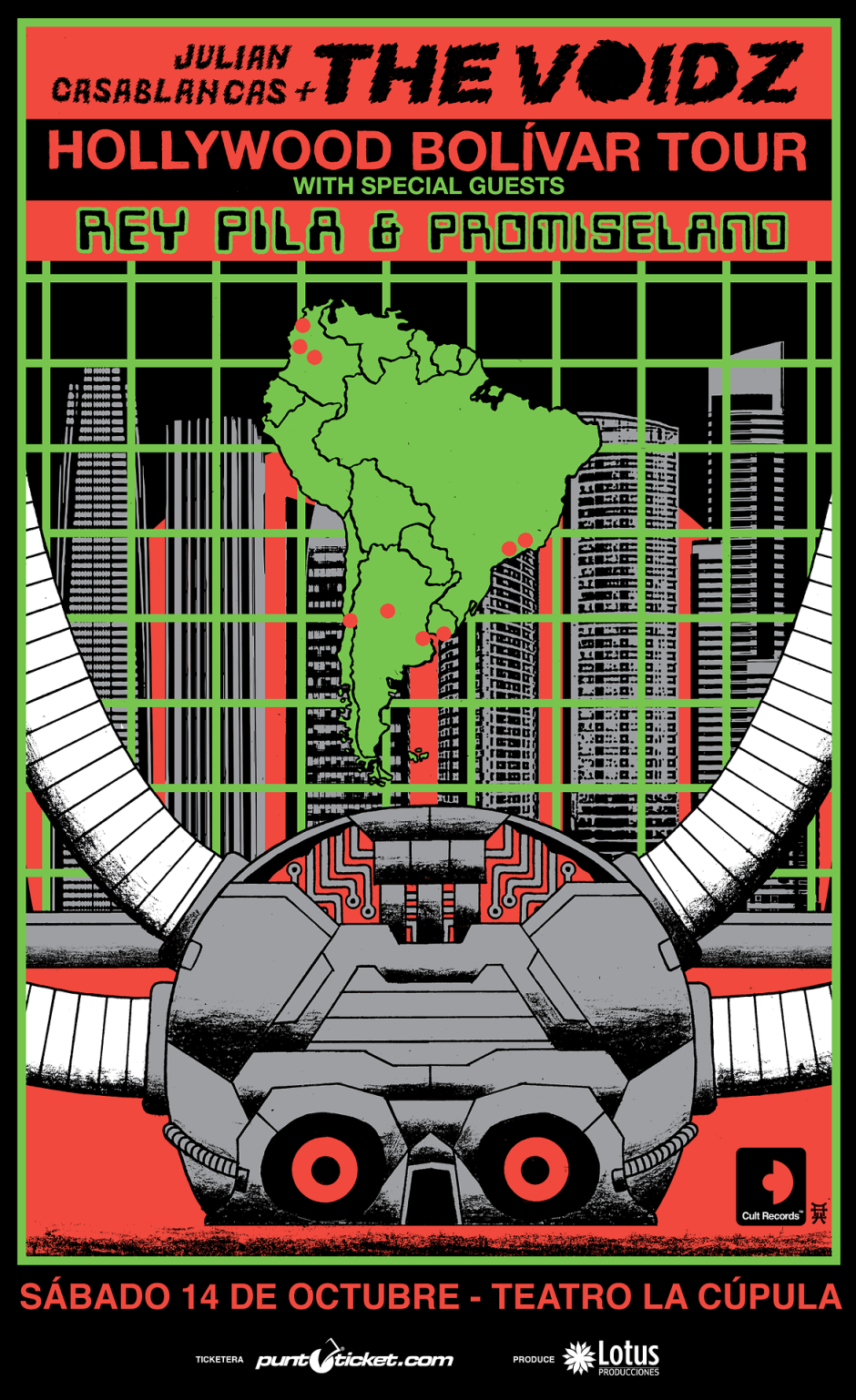 Si bien ya sabíamos que Julian Casablancas & The Voidz pasarían por nuestro país, hoy ya contamos con la información oficial de este nuevo concierto en Chile, el cual se suma a nuestra cada vez más saturada agenda musical. La banda del líder de The Strokes se presentará en el Teatro La Cúpula el día 14 de octubre, en compañía de las agrupaciones Rey Pila y Promiseland, ambas pertenecientes al sello Cult Records, propiedad de Casablancas.
