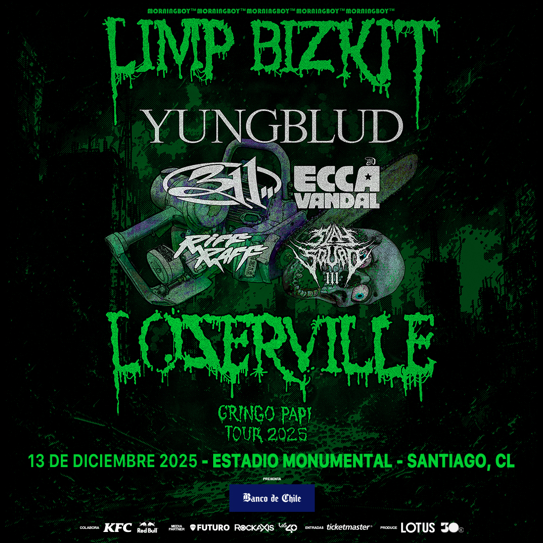 Bienvenidos a la jungla, punks, echad un vistazo. Es Limp Bizkit…”. El extracto de “My Generation” (2000) captura la energía caótica e intensa de las actuaciones de Limp Bizkit en LOSERVILLE TOUR, el proyecto de su líder Fred Durst que ha estado de gira por Estados Unidos y Europa en los últimos meses. Ahora, el tour, con YUNGBLUD, 311, Ecca Vandal, Slay Squad y Riff Raff, finalmente tiene fecha en Santiago el 13 de diciembre en el Estadio Monumental.