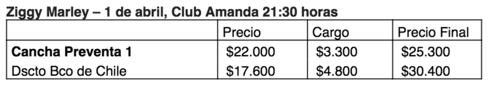 Dentro de las noticias también hay cambios de recinto para los conciertos que ya estaban anunciados. Ziggy Marley y Vicentico tendrán nuevos escenarios. Ziggy Marley se traslada al Club Amanda, manteniendo el lunes 1 de abril para su presentación y quienes hayan comprado entradas, no se preocupen, porque los tickets son válidos.