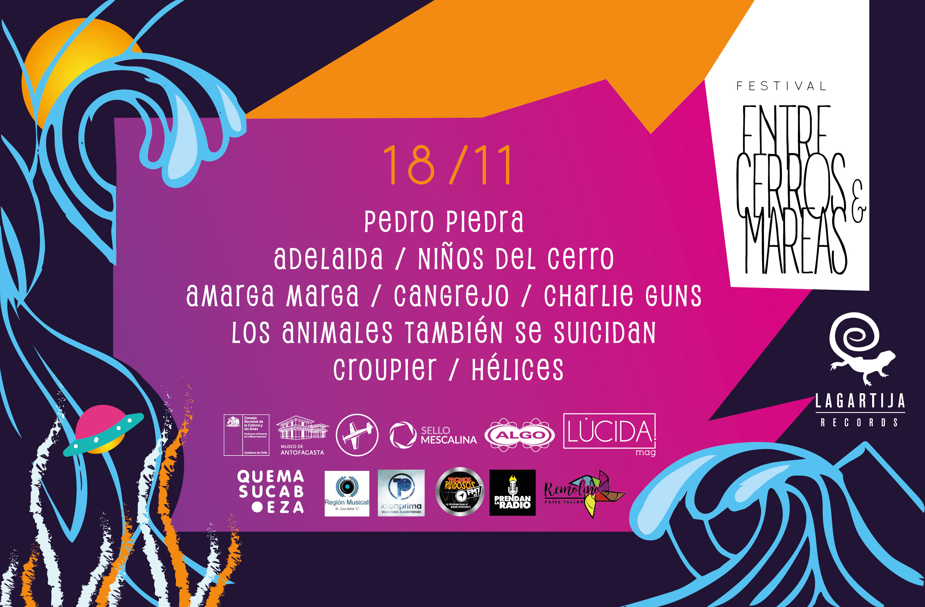 Este 18 de noviembre, desde las 18 horas, artistas de Antofagasta que actualmente residen en Santiago, como Cangrejo y Los Animales También Se Suicidan, se sumarán a otros grandes proyectos de la zona centro de Chile: Pedropiedra, Niños del Cerro, Amarga Marga, Kaskivano y Adelaida. Pero eso no es todo, porque los locales no pueden faltar, y Hélices, Charlie Guns y Croupier serán las agrupaciones dueñas de casa que recibirán a todos los interesados en el evento a realizarse en el Museo Regional de Antofagasta.