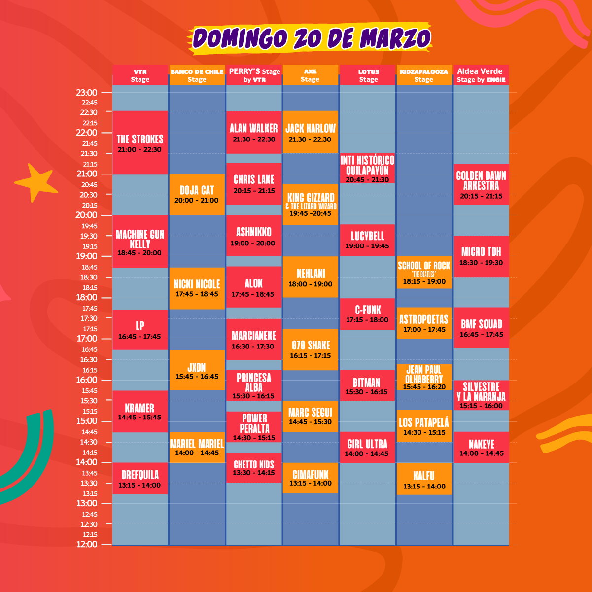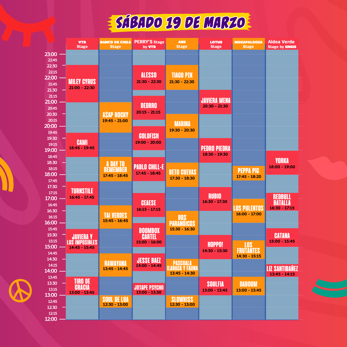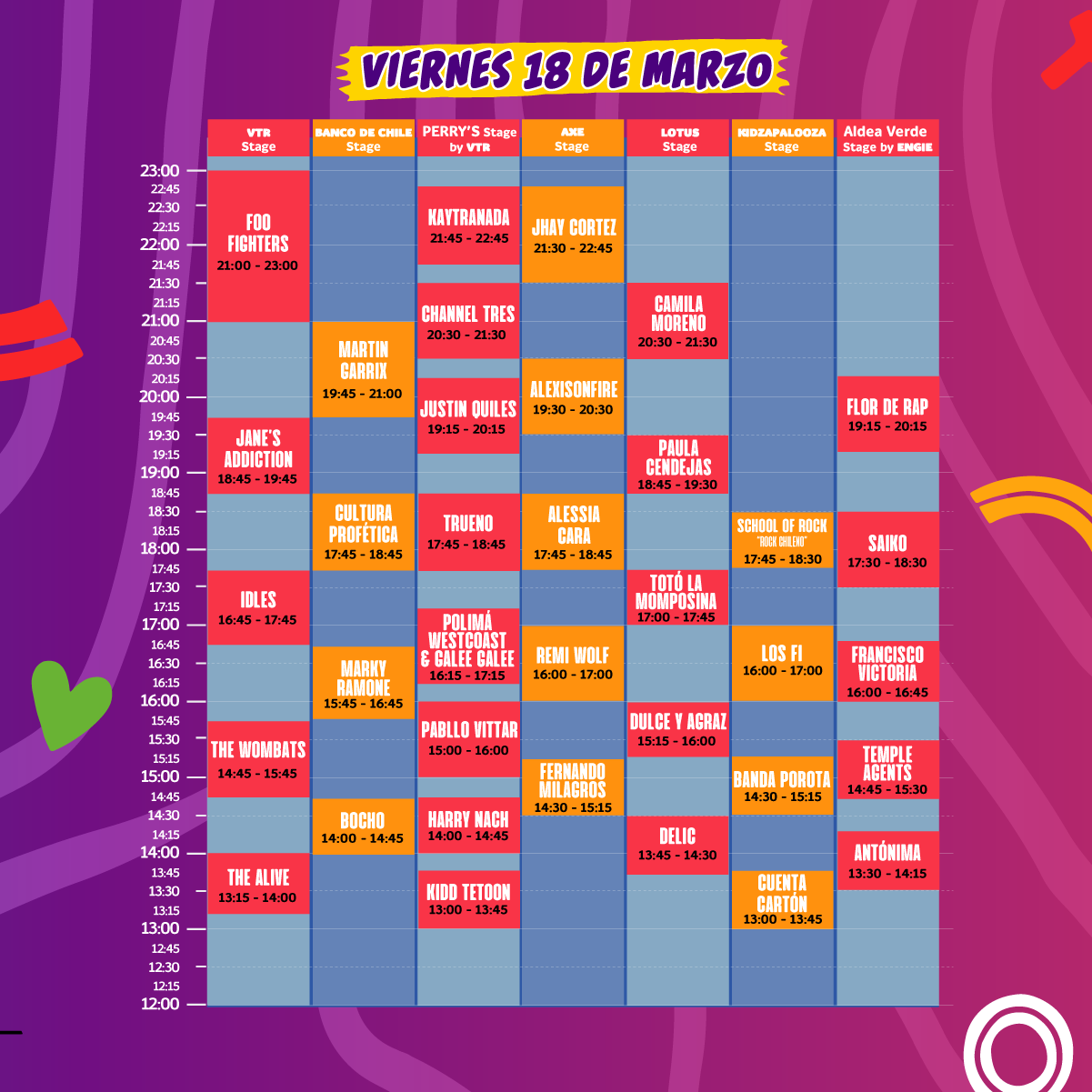 Te dejamos los horarios a continuación y que los topes entre artistas que deseas ver te sean leves: