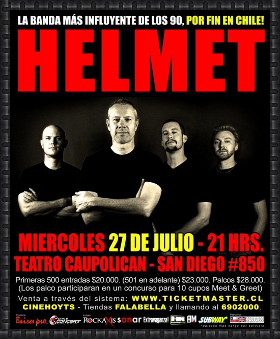 CONCURSO: Sorteamos entradas para el show de Helmet, para participar, deja un comentario con tu nombre y correo electrónico reales. Los ganadores serán anunciados el día 26 de julio.