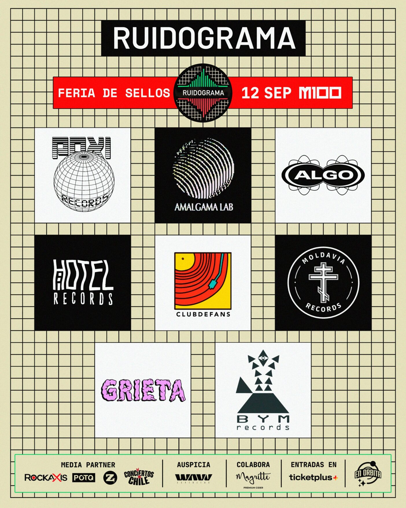 Además de la música, Ruidograma también presentará una feria de sellos con ocho nombres clave dentro de la escena local: Poxi Records, Moldavia Records, Hotel Records, Algorecords, BYM Records, Club de Fans, Grieta Label y Amalgama Lab.