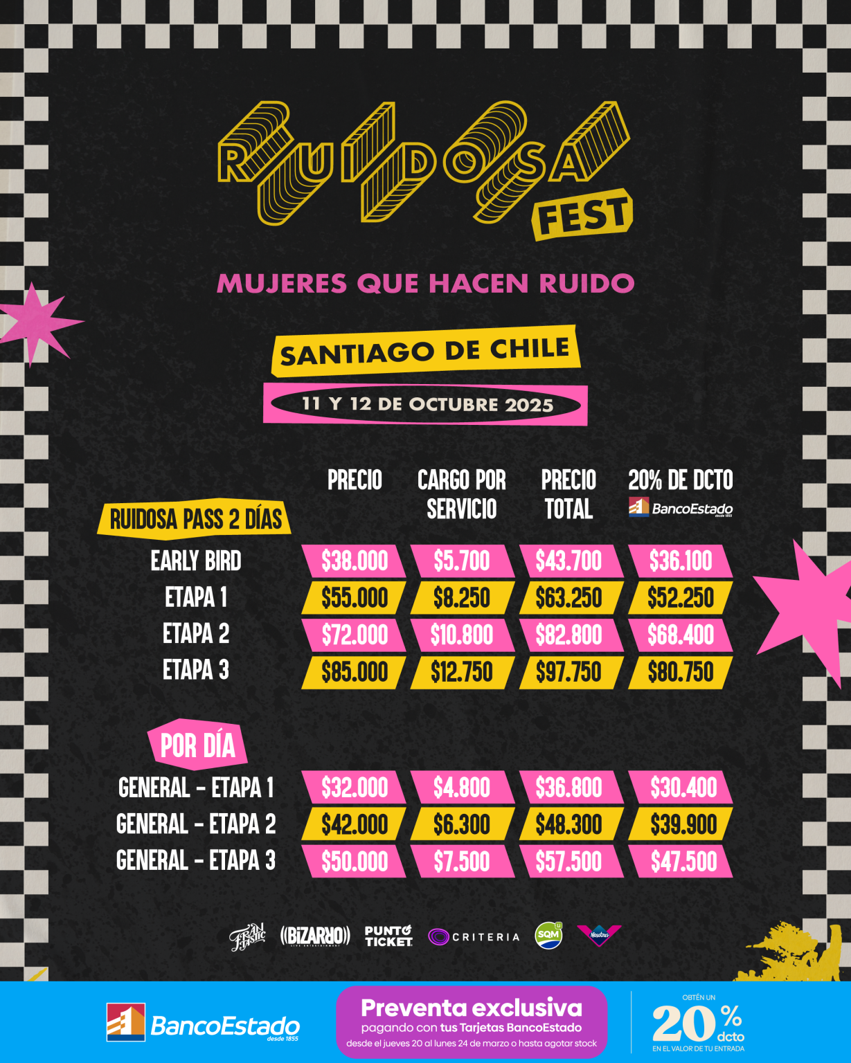 El festival liderado por Francisca Valenzuela confirma su cartel en una renovada versión 2025. Al cartel, liderado absolutamente con el power femenino, trae varias novedades, entre ellas que se desarrollará en el Parque O’Higgins y que contará con la co-producción de Bizarro.