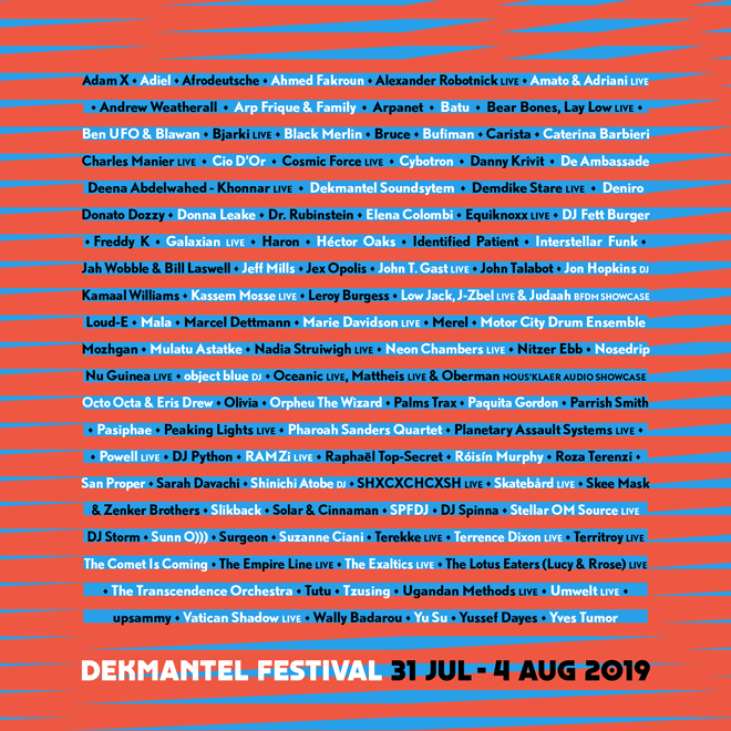 Puedes revisar el cartel de artistas de la edición 2019 de Dekmantel, la cual se llevará a cabo desde el 31 de julio al 4 de agosto de este año en la ciudad de Ámsterdam, en donde, claro, podrás escuchar a muy buenos artistas, pero a ningún latino entre sus filas.