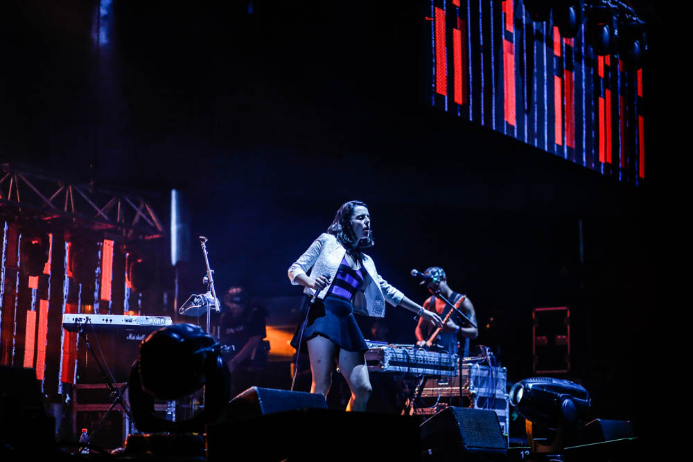 La bienvenida del público, que se opacaba entre tibios aplausos y caras confusas del sector sub 20 que entraba al recinto con ganas de preparar sus pasos de baile para Skrillex con algún DJ de turno, tomó fuerza con ‘Calor’, sencillo que acompañado de trabajadas visuales terminó por convencer a más de algún indeciso para que se entregara al -para muchos- desconocido sonido de la banda.