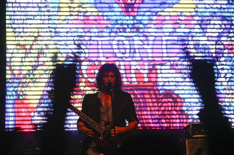 Desde el comienzo del espectáculo llamó la atención la pensada distribución de los integrantes sobre la tarima del fresco lugar. Todos en fila, participando en conjunto, con una cohesión envidiable, con una vitalidad stoner que golpeaba con fuerza, como si se tratara de un grupo de niños de doce años que sueña que está en Glastonbury frente a cien mil personas. No fue tan así, pero sí. Para los músicos, en especial para el chileno Pepe Hidalgo, se notaba que la ocasión iba a ser inolvidable y retrató en cada golpe a su bombo la potencia que quería traspasar a sus coterráneos.