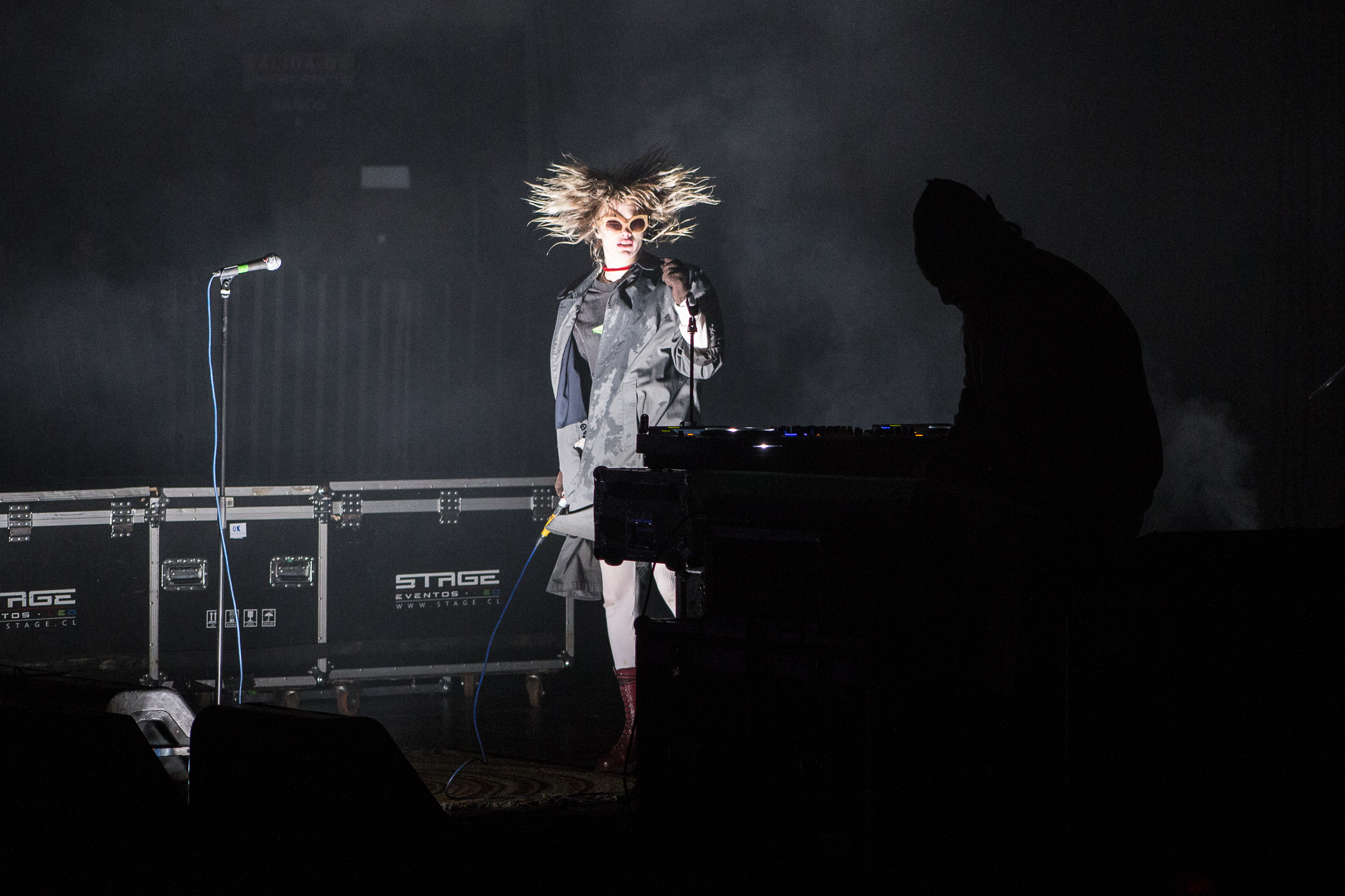 Enfundada en un abrigo negro con una polera de Type O’ Negative y lentes oscuros, Edith Frances se presentaba detrás del micrófono, con una actitud ensimismada e ida. De esa manera la procesión se daba por iniciada, con saltos y pasos de baile eclécticos, emulando de gran manera lo instaurado por Glass, la gran sombra de toda su presentación. Es que las comparaciones son odiosas, y a pesar que el público dio todo en la pista, el comentario era obligado en cada asistente ante lo hecho por Frances y la ausencia de Alice.