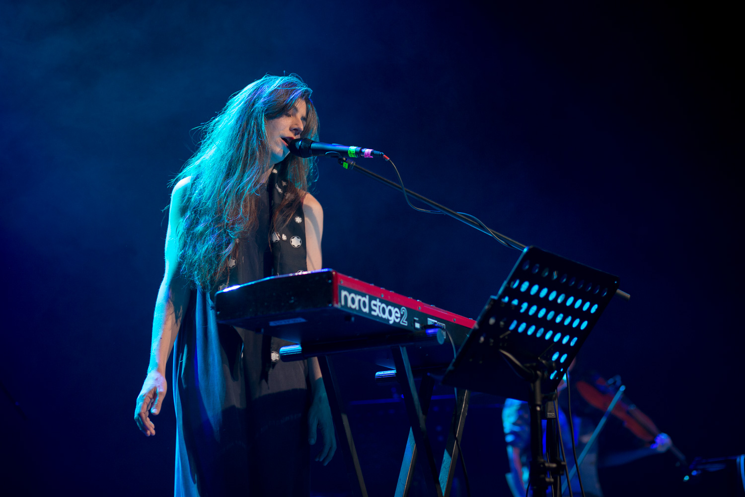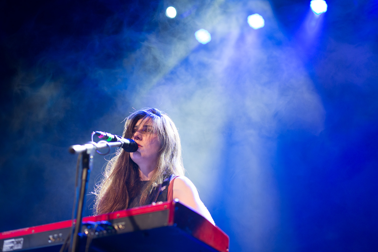 Luego de casi cuarenta y cinco minutos de show, llegó el turno de Julia Holter. Una de las primeras virtudes que se pueden detectar de sus presentaciones en vivo es el don que tiene para llevar sus canciones por diferentes pasajes. Si en sus discos nos encontramos con pequeños universos, en directo, estos se pueden apreciar más allá del sonido.