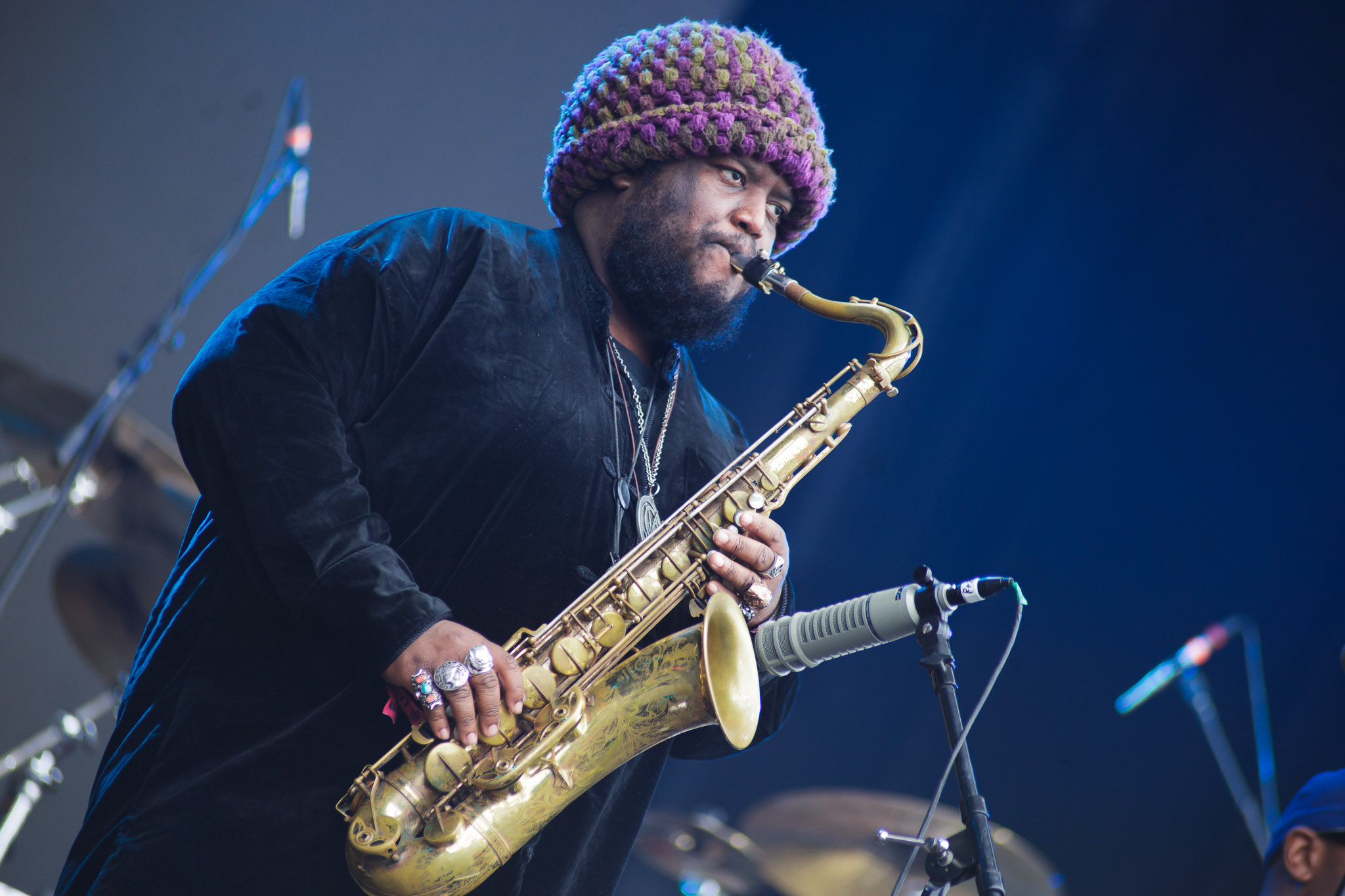 Arriba del escenario estaba Kamasi Washington y su banda, un combo de poder y ritmo que contaba con teclados, trombón, doble batería, voz -de la que hablaremos más tarde- y contrabajo. Este último instrumento era el culpable del ruido antes mencionado, Miles Mosley, el contrabajista de la banda, dejó la vida con un solo que comenzó normal y luego se fue desfigurando gracias a un pedal de wah wah y un arco para lograr sonidos más agresivos de lo normal. Una combinación que, personalmente, nunca había visto en vivo.