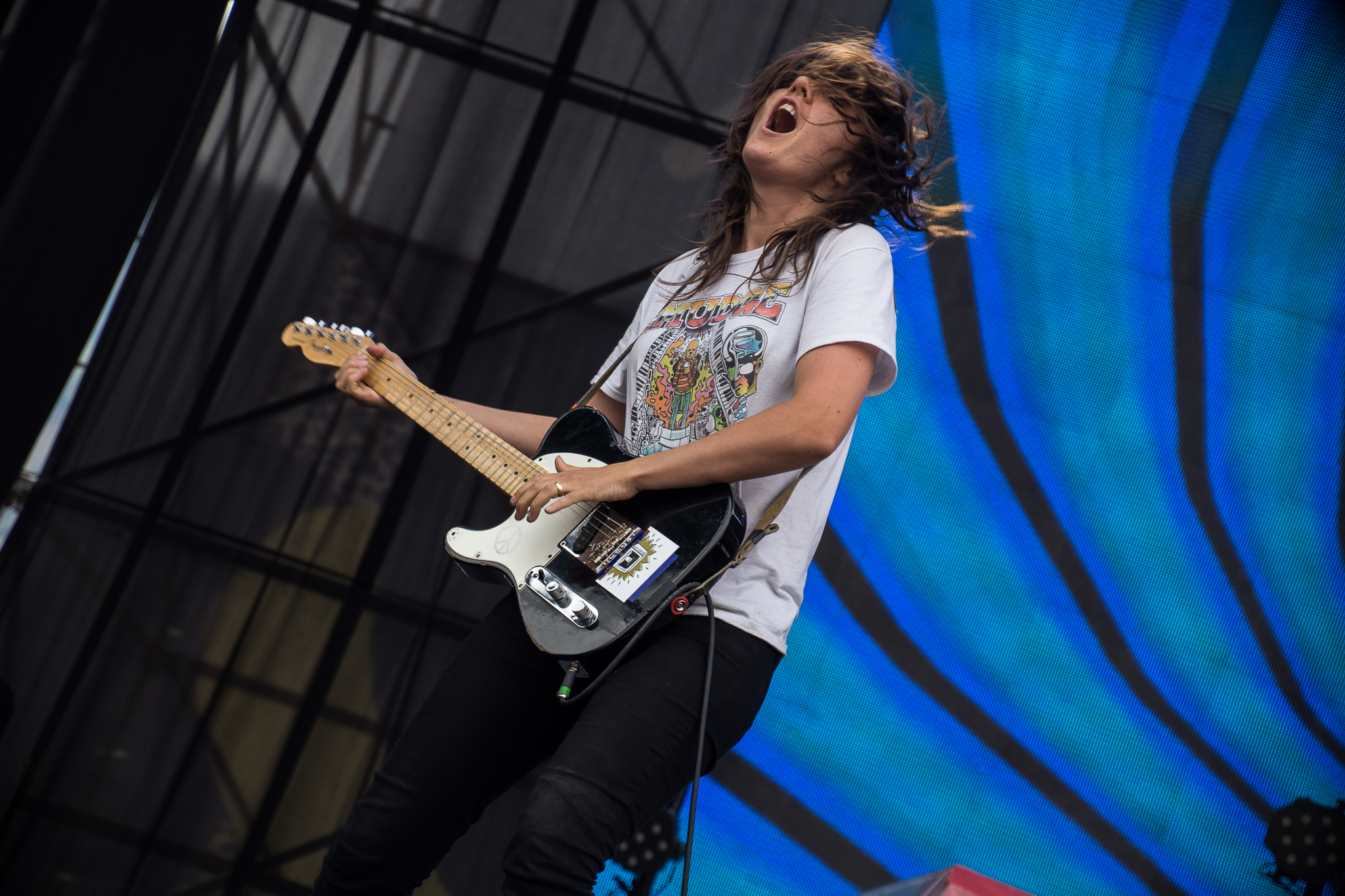 La cantante, siempre normal-siempre media tímida, ingresó al escenario y desde que se colgó su instrumento no hubo quien la detuviera. Llega a parecer que Courtney entiende a las cuerdas como su extensión, y hace ver a su guitarra como si fuese la cosa más liviana, fácil de manejar y hacer sonar como los dioses.