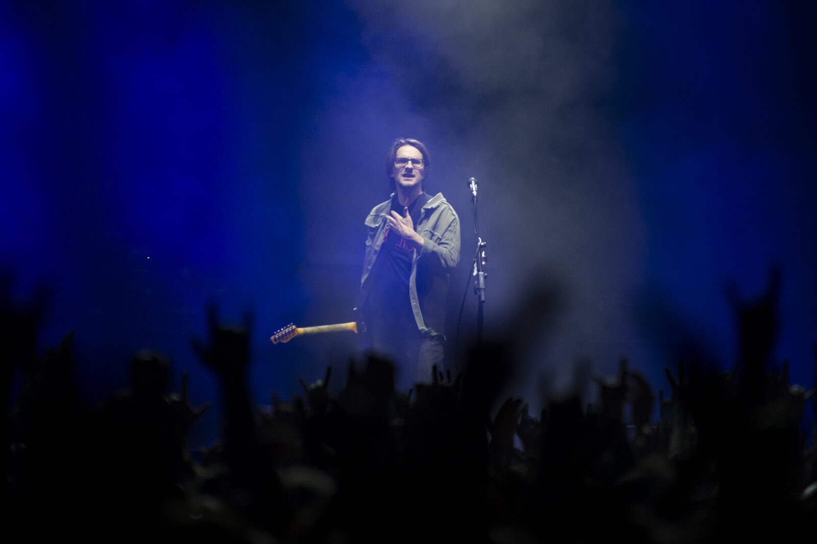 La ansiedad iba a mil cuando Steven Wilson saludó al público y prometió nada menos que tres horas de música, y destacó las banderas brasileñas y argentinas que alcanzó a ver. Bromeó con un cartel de un fan, a quien le dijo: “Lo siento. No vamos a tocar esa canción”.