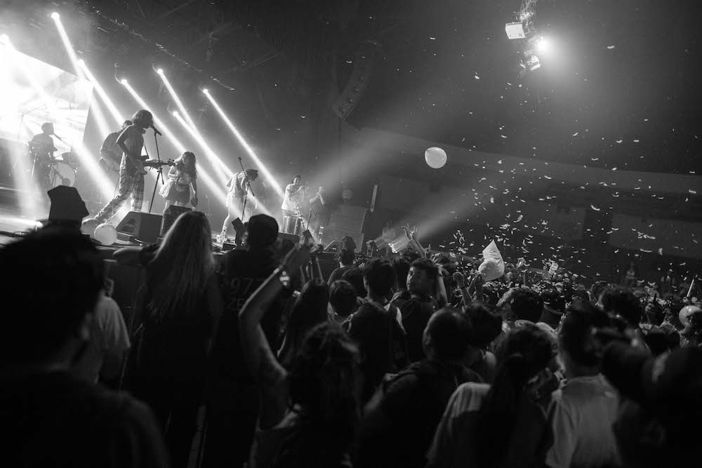 El caso de la segunda jornada de Lollapalooza Chile, por supuesto, no fue la excepción. Dio igual que la banda estuviera tocando en el marco de un festival de estas proporciones, sus fans encontraron la manera de subir al escenario a interpretar ‘Pateando Petróleo’ -como siempre ocurre- junto a los chicos, e igualmente destrozaron unos cojines para llenar de plumas todo el espacio.