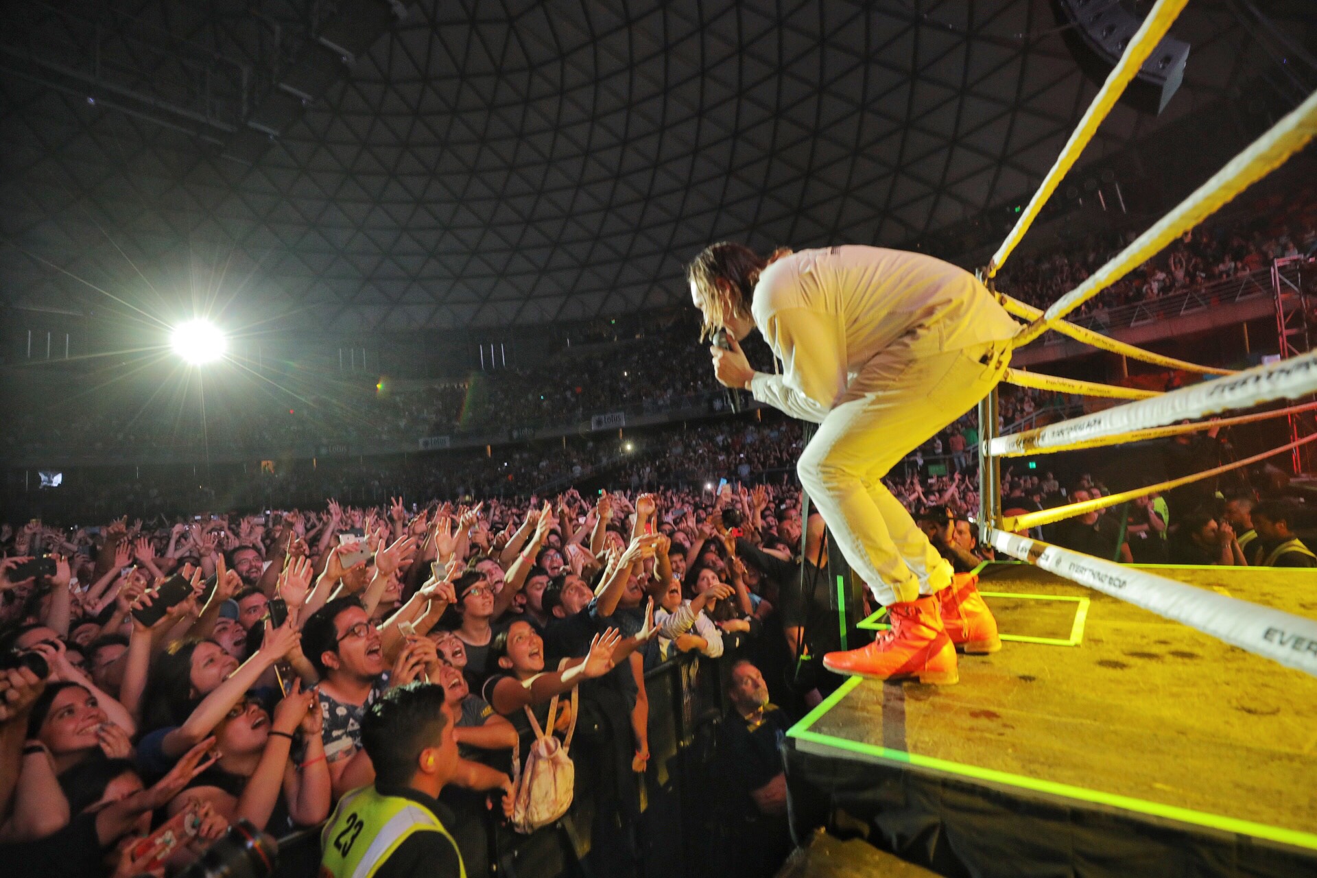 Muchas personas que viven de la industria musical -y también quienes la consumen- alegan la carencia de sangre desde la caída del grunge, y en especial durante la hegemonía de Internet y las máquinas como principal motor de creación y distribución. Extrañan un proyecto propositivo, más allá de una bonita foto o artilugios dispensables. Hablan de la ausencia de una nuevo nombre, digno de congregar y mover masas no sólo por imitables cortes de pelo. Arcade Fire se presentó el día domingo en Lollapalooza Chile 2014 y probó que hay esperanza.