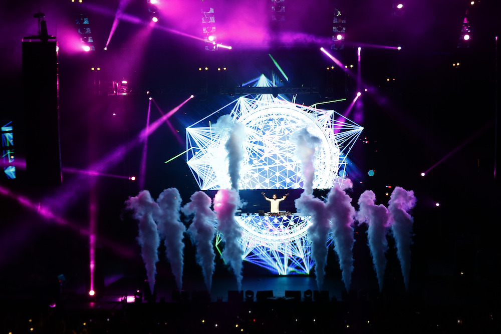 Desentendiéndose de la enfermiza puntualidad de todos los shows, y faltando 7 minutos para la hora de inicio pactada, los habitantes del Movistar Arena empezaron a pifiar nerviosamente. Mucha ansiedad y expectación se generó en torno a la presentación del norteamericano, quien aún no logra descartar del todo la chapa de fenómeno mediático, en contraposición a los que afirman en el estilo que cultiva la renovación más profunda producida en la música de baile durante los últimos años.
